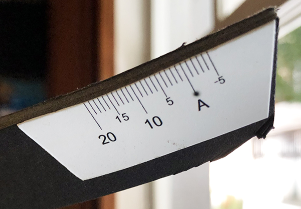 Note that this material will not stand either rough handling or moisture. There are other kinds of plastic and wood boards that could be used to build a more resistent instrument. You are encouraged to do that. I went with foamboard because I had it around and it is so easy to cut. Very light too. But fragile. The instrument frame and arm images were printed on premium presentation paper ( density 145 g/m2 ) which is heavier and deforms less than regular paper. The design uses a minimum of printing ink, to reduce paper deformation while printing. Also to minimize deformation while bonding the paper to the board, a spray mount adhesive was used. The scale must be bond completely flat to the board, without bubbles or wrinkles. Any visible deformation will ruin the instrument precision.