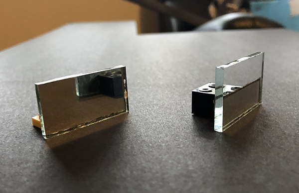 Embed the other brick similarly to the front of the frame. Mirrors This octant has two 2 rectangular mirrors. This can be obtained and cut in any glass shop. Both have the same size: 2 cm x 5 cm ( 3mm thick regular mirror )