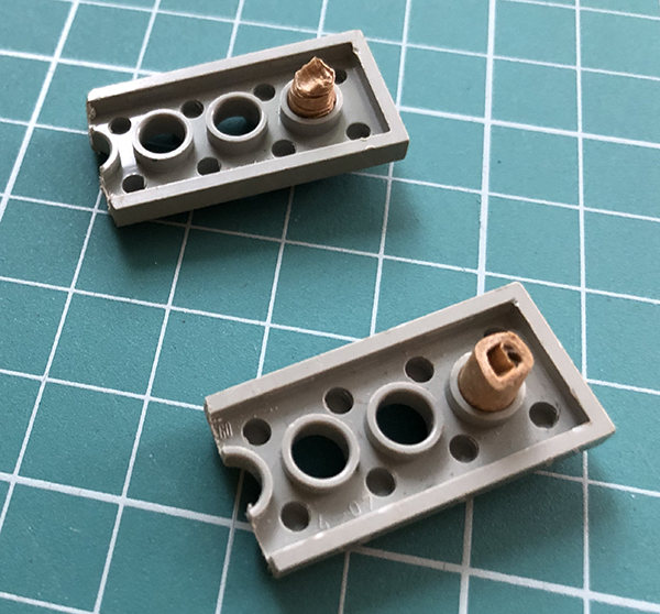 There are many kinds of Lego pieces that can be used to build a simple rotation axis. I choose two