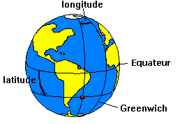 La latitude et la longitude. La Latitude est l'angle mesuré à partir de l'équateur,