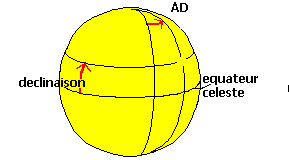 s'appelle l'Ascension Droite, ou AD. Comme la longitude, l'ascension