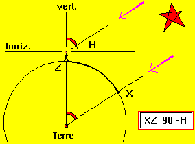 l'horizon et l'astre. Sur le shema 7, on peut voir que la distance Zénithale