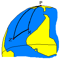 approximated formula. 1.6) Universal Time (UT) to Dynamical Time (TD) difference calculated by a combination of tables (from 1620 to 1992), actual values (from 1992 to 2001), short term predictions (from 2001 to 2016) and prediction formula (after 2016 and before 1620). 2) Solution of the position triangle PXZ Position triangle PXZ is an spherical triangle and the solution requires the use of spherical trigonometry formulas (law of sines and law of cosines). read more>>