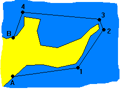 O comando Waypts Mapa desenha o mapa dos waypoints. Pressionando U, o programa une os waypoints por retas na ordem em que foram especificados. Os waypoints com nomes iniciados por '*' não são unidos. Use esta convenção para especificar waypoints que não fazem parte do percurso.