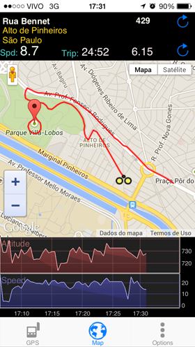 is a bicycle computer and trip logger app. It uses the phone sensors